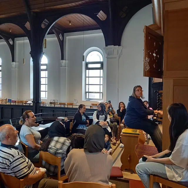 Zum Programm im Begegnungscafé gehörte die spontane Gestaltung des Weltfrauentages mit Blumen und einem kleinen Geschenk für jede Besucherin. Eine Orgelbesichtigung im Mai in unserer Kirche mit sehr interessanten Erklärungen fand bei großen und kleinen Besucher:innen großes Interesse, so dass eine Wiederholung geplant ist.
