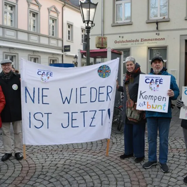 Um ein friedliches Zeichen gegen jede Form von Ausgrenzung und Rassismus zu setzen, hatte der Kunstverein Kempen e. V. Ende Januar zur Teilnahme an einer Demo auf dem Buttermarkt aufgerufen. Es bestand Einigkeit, dass wir als Begegnungscafé hierbei nicht fehlen dürfen.